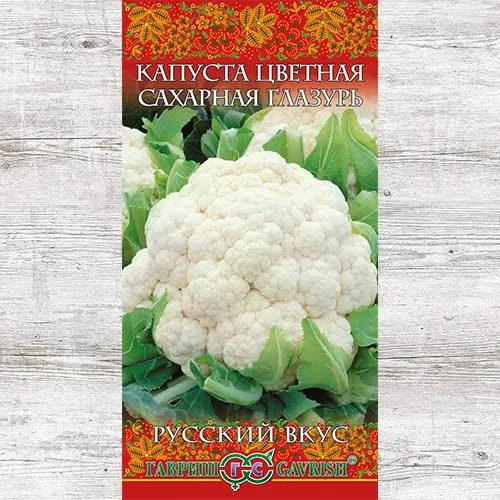 Капуста цветная Сахарная глазурь среднеранний сорт, имеющий довольно крупную и плотную головку. Масса товарного плода 0,5-1,0 кг. Цветная капуста незаменима в диетических блюдах, ее используют для гарниров, заморозки на зиму. Агротехника В апреле выращивание рассады в парнике, пикировку не проводят. Цветную капусты высаживают на освещенное место так, чтобы в 1 м убиралось 4-5 стеблей. Полив производится 3-4 раза в неделю, количество зависит от влажности почвы и естественных осадков. Чтобы защитить цветную капусту от вредителей и болезней, растения опудривают золой или табачной пылью. Уборку производят, когда головка начала раскрываться. Достоинства сорта капусты цветной Сахарная глазурь Головка капусты не темнеет, потому что до самого сбора урожая прикрыта листьями. Богата витаминами, ценится в питании страдающих диабетом и ожирением. Закажите семена цветнойкапустыСахарная глазурь, обратившись в наш интернет-магазин!