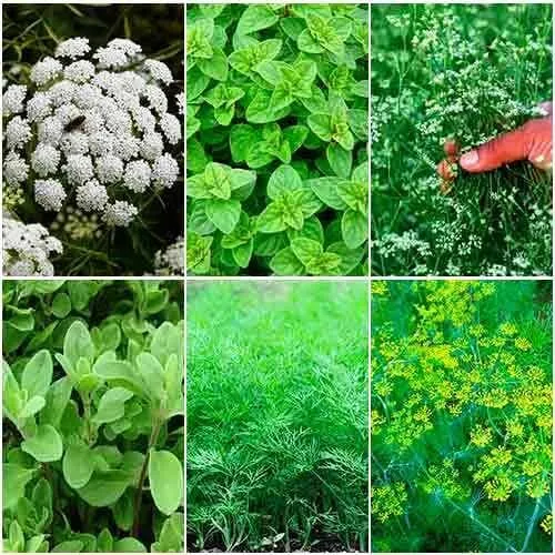 Пряные растение, вошедшие в состав смеси придают приготовленной птице неповторимый вкус и аромат, их легко и удобно выращивать на даче, они всегда под рукой, свежие — летом или засушенные на зиму. Сладкий, освежающий вкус и пряный аромат аниса прекрасно сочетается со вкусом домашней птицы. Душица (орегано) очень популярная приправа во всем мире, а нафаршированная ею запеченная утка приобретает невероятный аромат и насыщенный многогранный вкус. Семена кориандра добавляют в маринады, а свежая зелень (кинза) прекрасное дополнение к салатам из курицы. Невозможно представить себе вкус жареного гуся без майорана, его мятно-перичный вкус и душистый аромат выгодно оттенит достоинства любого блюда. Салат с фенхелем по праву считается лучшим гарниром к блюдам из курицы и утки, как впрочем, и любые тушеные овощи с добавлением этой пряной травы. Пажитник — уникальная приправа, вкус которой напоминает немного орехи, немного грибы. Сухой порошок из семян и засушенной зелени пажитника лучше всего подходит для натирания птицы перед запеканием, а если добавить в смесь оливковое масло и чеснок, то кулинарный шедевр обеспечен.