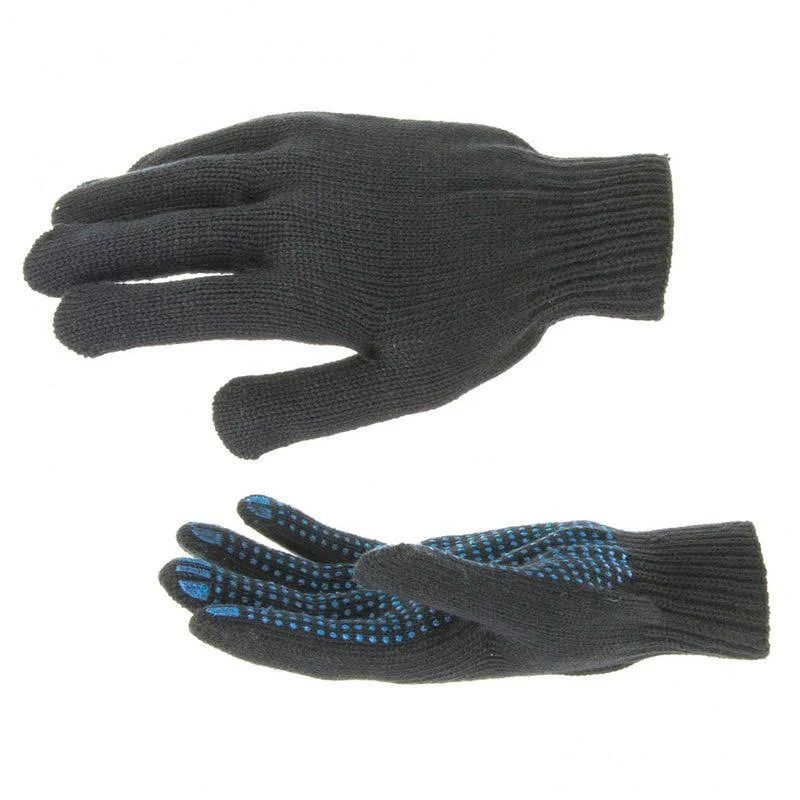 Перчатки полушерстяные с ПВХ Теплые перчатки с точечным покрытием ПВХ предназначены для работы при пониженных температурах. НАЗНАЧЕНИЕ: Защита рук от переохлаждения, проколов, порезов, натирания и прочих механических повреждений во время работы в холодных помещениях или уличных работ в осенне-зимний период. ПРЕИМУЩЕСТВА: Плотность вязки и высокое качество сырья обеспечивают длительную износостойкость, а защитный слой ПВХ делает изделия незаменимыми при проведении ремонтных и строительных работ любой сложности. Практичные - можно многократно стирать без потери свойств Утепленная пряжа удерживает тепло, но поддерживает циркуляцию воздуха Точечное полимерное покрытие увеличивает прочность перчаток и препятствует выскользанию инструмента из рук увеличивая сцеплениеСпециальный венчик облегчает надевание перчатки и препятствует разрыву края. Сделано в России. Соответствуют требованиям регламента таможенного союза ТР ТС019/2011.