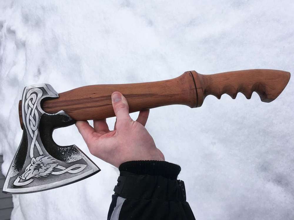 Топор изготовлен из прочной кованой стали.
