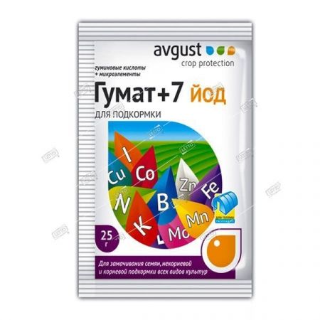 Удобрение на основе гуминовых кислот для предпосевной обработки и подкормки растений. Действующее вещество: смесь калиевых и/или натриевых солей гуминовых кислот – 75%, K-5%, медь – 0,2%, Zn – 0,2%, Mn – 0,17%, I – 0,005%, Mo – 0,018%, Co – 0,02%, Fe – 0,4%, B – 0,2%. Увеличивает всхожесть и энергию прорастания семян. Улучшает структуру и повышает плодородие почвы. Обеспечивает получение высоких урожаев. Увеличивает накопление плодами питательных веществ и витаминов. Экономично: 10 г препарата на 100 литров воды.