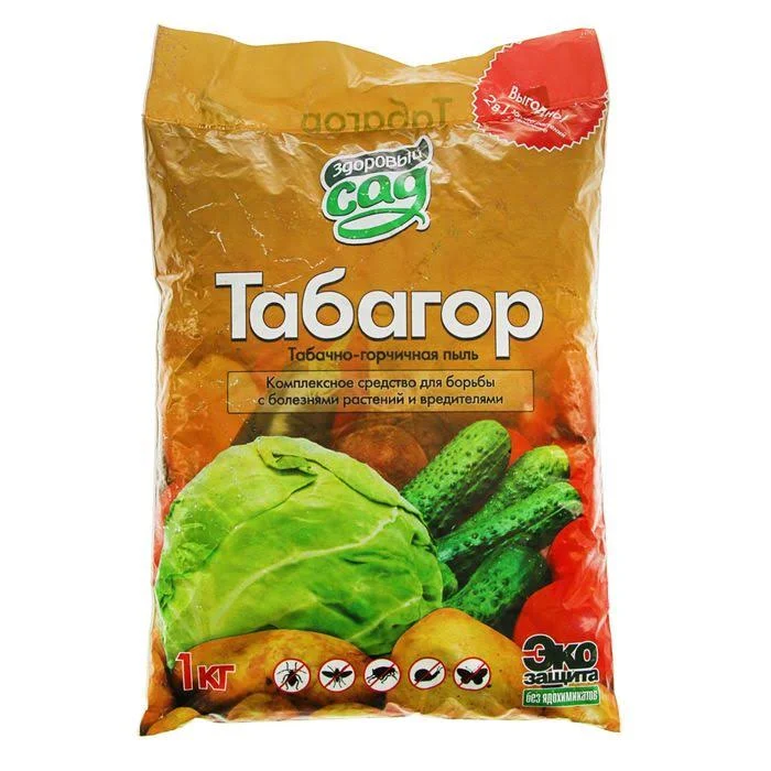 Главные враги садовода — болезни, поражающие растения. Без внимания к защите цветов, деревьев и кустов огородник рискует совсем загубить их или потерять урожай. К счастью, учёные постоянно находят новые способы решения проблемы. Средство от болезней растений «Табагор» Здоровый сад, 1кг придёт на помощь в сложной ситуации. Средство безопасно для насаждений, но губительно для возбудителей болезней. Использование препарата на садовом участке будет лучшим проявлением заботы об огороде и существенно повысит ваши шансы сохранить плоды. Как диагностировать болезнь у растения Мучнистая роса проявляется в виде белого налёта на верхней или нижней стороне листьев. Это грибок, который распространяется в течение лета с помощью ветра. Узнать ржавчину можно по ярко-жёлтым или оранжевым пятнам на нижней стороне листьев. Они образуют подушечки, выступающие из разрывов покрова. Болезнь переживает зимовку. Если не убрать повреждённые части, заражение продолжится и на следующий год. Пятнистости всегда возникают из-за грибка. Они отличаются цветом и, редко, формой. Серая гниль поедает стебли, а не листья, хотя тоже вызвана грибком. Небольшие влажные точки бурого цвета разрастаются в концентрические круги. Стебли не получают воду, темнеют и отмирают. При отсутствии ухода растение поражается целиком. Чёрная ножка особенно опасна для рассады и сеянцев. Споры грибков заселяют корень и перекрывают доступ воды к нему. Росток с чёрной ножкой очень легко выдёргивается из земли.