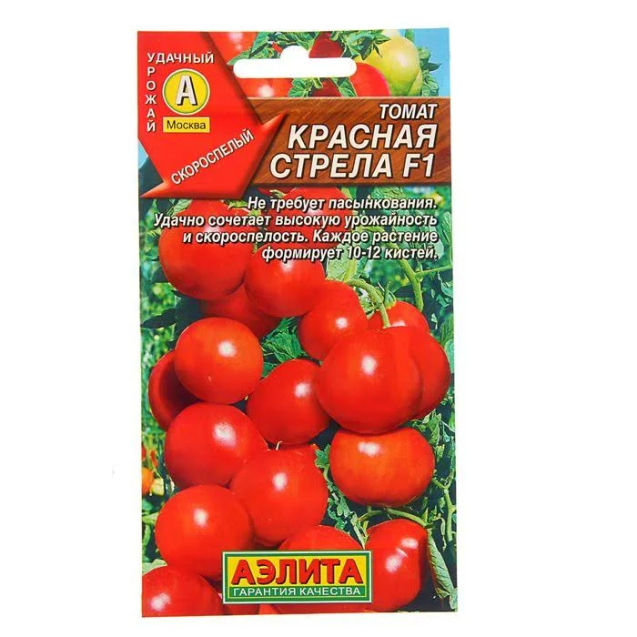 Семена Томат ""Красная стрела"" F1, скороспелый, 10 шт «Красная стрела F1» — это скороспелый детерминантный сорт, который подходит для открытого грунта и теплиц. Вынослив к низкой освещённости и стрессовым погодным условиям. Устойчив к вирусам, кладоспориозу, фузариозу и толерантен к бактериозам. Растения с низкой побегообразовательной способностью почти не требуют пасынкования. При высоте 120 см формируют 10–12 кистей. В каждой из них вырастает 7–10 плотных, гладких и мясистых плодов по 100–130 г. Подходит для потребления в свежем виде и консервирования. Посев: через рассаду с обязательной пикировкой в фазе 1–2 настоящих листьев. Высаживайте сеянцы в возрасте 60–65 дней, размещая 4–5 шт. на 1 м². Растения подвязывайте и формируйте в 1–2 стебля. Обязательно удаляйте боковые побеги (пасынки). Регулярно поливайте, пропалывайте, рыхлите и подкармливайте."