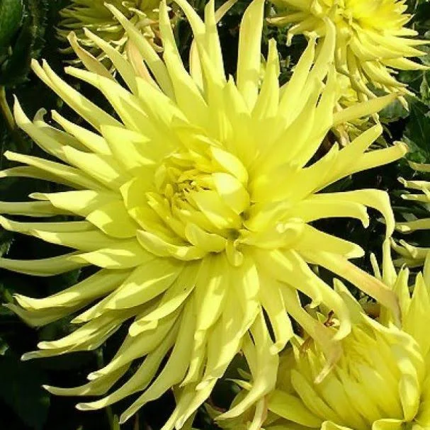 Георгина Йеллоу Стар бахромчатая (для хранения) цветет образуя причудливые цветы ярко-желтого цвета. Диаметр цветка при роспуске 15 см. Цветение георгины Yellow Star всегда обильное, продолжительное, бутоны образуются с июля по октябрь. Высота растения:120 см.