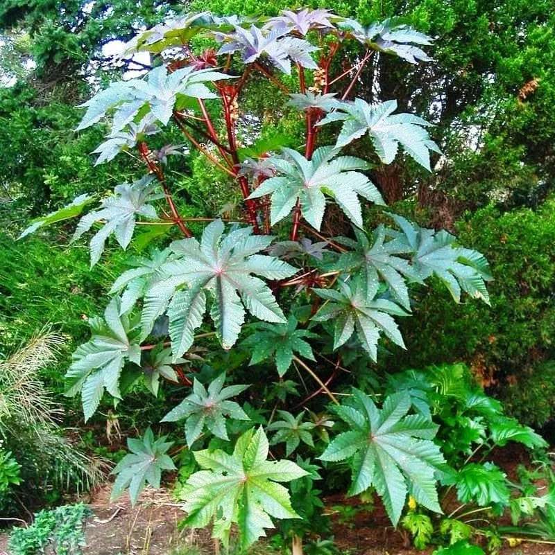 Декоративно-лиственное растение из семейства Молочайные высотой 1,5-2,0 м. Растение мощное, быстрорастущее, раскидистое. Стебли прямостоячие, разветвленные, голые. Листья зеленые, расположены в очередном порядке, крупные, на длинных полых черешках, пальчато-раздельныe, с 5-10 лопастями. Цветки красные, собраны в плотные кистевидные соцветия. Теплолюбива, светолюбива и довольно засухоустойчива, предпочитает участки с плодородной и хорошо обработанной почвой. Выращивается рассадным способом. Используется как акцентное растение или в небольших свободных группах. Семена ядовиты!