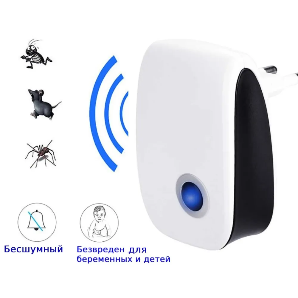 От Комаров Ультразвуковой отпугиватель от насекомых и грызунов! Новинка 2021 года пролонгированного действия (безвредна для домашних животных)! Ультразвуковой отпугиватель избавит от нашествия нежеланных насекомых и грызунов. Прибор полностью безопасен для домашних животных. Электроприбор в пластиковом корпусе размером 98х58х58 мм мощностью 5,5 Вт работает от бытовой электросети не менее 30 тысяч часов. Он излучает волны на частоте 20-65 кГц по площади 80 м2 при температуре окружающей от 0 до +40оС. Способ воздействия Сначала они впадают в оцепенение, затем покидают зону действия прибора. 1. Внимание, Ультразвуковой отпугиватель грызунов и насекомых нельзя использовать одновременно с отравами. Отпугиватель насекомых и грызунов выпроваживает непрошенных «гостей», а приманки привлекают их обратно. Ультразвук отражается от твердых покрытий и поглощается мебелью, домашнем текстилем и коврами, поэтому лучше действует в пустом помещении. На кого распространяет свое действие новый прибор? Купить ультразвуковой отпугиватель можно для воздействия на мышей, крыс, мошек, комаров, ос, слепней и других насекомых и грызунов.