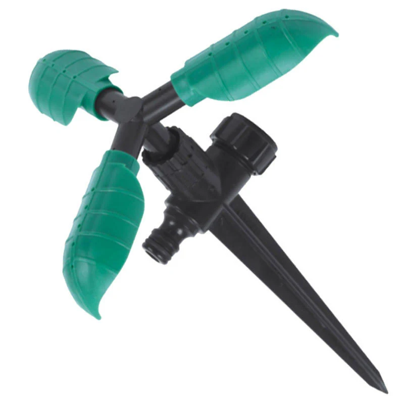 Ороситель круговой с вращающейся головкой из трех рожков-оросителей служит для равномерного полива территории. Разработан для длительной и надежной эксплуатации. Продукт изготовлен из стабильного пластика. Он гарантирует изделию износоустойчивость и сопротивление механическим повреждениям. Конструкция оросителя представляет собой вращающийся элемент, на котором расположены три разбрызгивателя. Каждый из них тоже может принимать разные положения относительно своей оси. Рожки оборудованы 6 форсунками. Такое строение оросителя позволяет осуществлять быстрый и густой полив, а также регулировать его характер и направленность. Крепится на земле ороситель при помощи колышка. Универсальная пластиковая ножка за счет заднего выхода с наружной резьбой 3/4"", при необходимости полива на большой площади, позволяет продолжать последовательное подключение дополнительных распылителей. Подключение к шлангу с помощью коннектора. • Бесшумная работа • Тонкая настройка полива • Рабочее давление от 1 бара (обычное давление и"