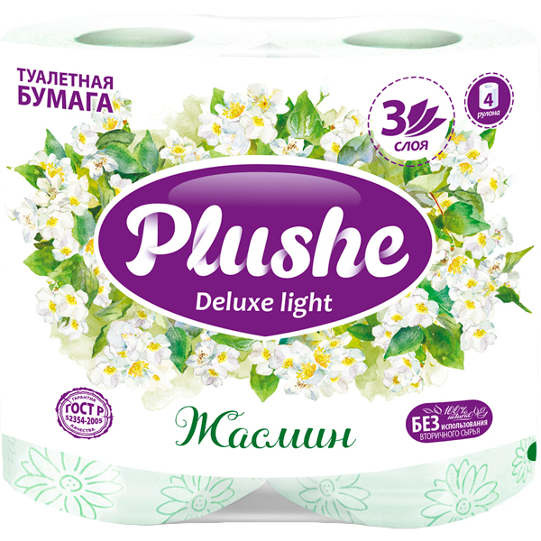 Главная / Каталог / Сад и Огород / Хоз / Товары для дома / Бумага Туалетная PLUSHE Deluxe Light Жасмин 3-х сл. (4шт)
