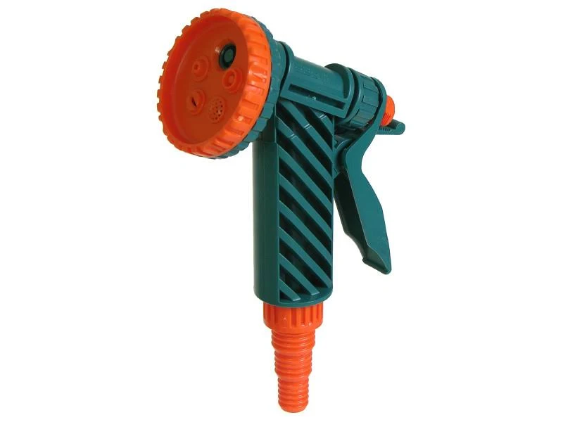 Душ-пистолет поливочный 5-ти функциональный с фиксатором 1/2-5/8-3/4 Душ-пистолет 5-ти функциональный с фиксатором с цанговым креплением ½, используется для работы в саду и огороде для полива растений и кустарников. Душ легко соединяется со шлангом, что поможет легко подобраться в любую точку Вашего участка. Струя легко фиксируется и обеспечивает более обширный полив, что значительно облегчает работу. Инструмент выполнен из высококачественных материалов, устойчив к внешним воздействиям, прослужит на Вашем участке не один сезон.