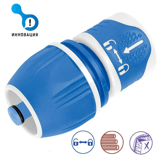 Высококачественный аксессуар для полива серии TWIST-AND-LOCK эргономической конструкции комфортный в использовании. Бренд: Aquapulse Серия: TWIST-AND-LOCK Страна производитель: Тайвань Аксессуары для полива серии TWIST-AND-LOCK имеют эргономическую конструкцию с противоскользящим покрытием, обеспечивая комфорт в использовании. Изготовлены из высокопрочного ABS пластика, прорезиненные. Инновационный, надежный механизм TWIST-AND-LOCK предотвращает от случайного разъединения системы полива, возникающего вследствие гидроудара. Подходит для частого использования даже для самых требовательных садовников. Данная модель легко снимается, если его потянуть на себя. Новая форма зажимной гайки позволяет прочно зафиксировать коннектор со шлангом. Зубья цанги специальной формы обеспечивают надёжное закрепление тонкостенных шлангов. Может быть установлен на определённых участках систем орошения как правило устанавливается на выходной части шланга. Особенностью коннектора с автостопом является автоматическая остановка потока воды при отключении элемента полива (насадка, ороситель и т.д.) - Диаметр шланга 1/2’’-5/8’’-3/4’’ - Вытянутый колпачок защищает шланг от изгиба, и скольжения при подключении - Эргономическое покрытие для удобного обслуживания - Механизм twist-and-lock предотвращает случайное отсоединение