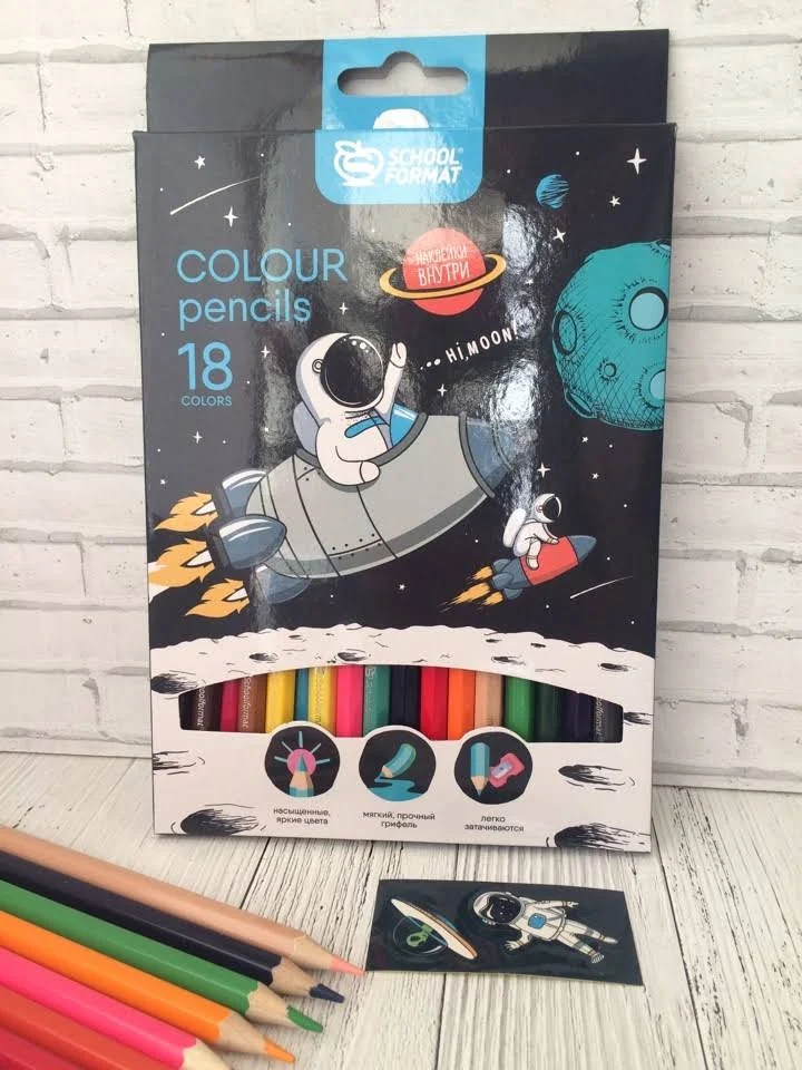 Милые космонавты путешествуют по открытому космосу, встречаются с инопланетянами и устраивают гонки. Есть, на что посмотреть! В каждой пачке 2 набора наклеек в веселыми космонавтами! Корпус выполнен из дерева. Карандаши легко затачиваются и не ломаются. В сочетании с актуальным дизайном такая упаковка выглядит эффектно и привлекает внимание.
