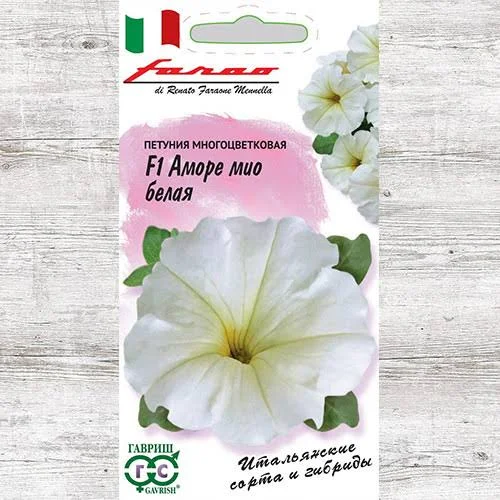 Петуния Аморе Мио белая обильноцветущая каскадная петуния с крупными белоснежными цветками с приятным ароматом жасмина. Благодаря универсальному окрасу соцветий сорт идеален для оформления клумб, бордюров, вазонов, подвесных кашпо как в сочетании с другими расцветками, так и в сольном варианте. Особенности выращивания Петунии Аморе Мио белой Петуния предпочитает рассадный способ выращивания с максимальным доступом к солнечному свету. Хорошо себя чувствует на плодородных и вентилируемых почвах. Закажите Петунию Аморе Мио белую и проявите творческую фантазию в создании уникальных цветочных композиций.